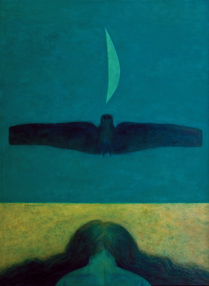 Woman, Bird and Crescent Painting Woman, Bird and Crescent 130 x 98 cm Oil on canvas Ref 037-0S 1973 Share this: Share on X (Opens in new window) X Share on Facebook (Opens in new window) Facebook Like Loading... Related